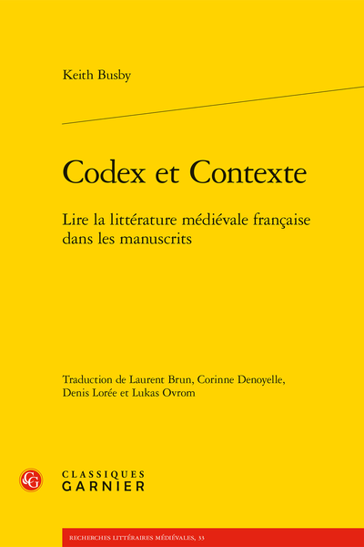 Keith Busby, Codex et Contexte. Lire la littérature médiévale française dans les manuscrits, Paris, Classiques Garnier, 2022 (Recherches littéraires médiévales, n° 33). 904 p. ISBN : 978-2-406-12210-4. Prix : 49 euros.