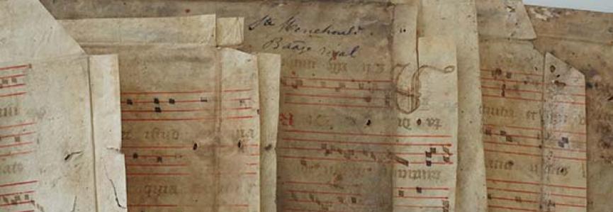 L’intérêt pour les fragments et les défets de reliures trouvés dans les feuillets de garde des manuscrits ou dans les couvrures de liasses d’archives, en particulier issus de livres liturgiques pourvus de notations musicales, n’a cessé de croître ces dernières décennies dans les milieux de la recherche sur les manuscrits médiévaux, notamment avec le programme Fragmentarium mené par l’Université de Fribourg en Suisse.