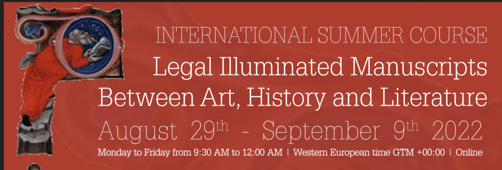 Informations pratiques et programme : https://www.fcsh.unl.pt/outros-cursos/os-manuscritos-juridicos-iluminados-entre-arte-historia-e-literatura-legal-illuminated-manuscripts-between-art-history-and-literature/?fbclid=IwAR2hmhVryWoiqcbzi5sR5itDDHBX0GyWht_VoyxqUMifRkCXQVywEUZDgRM