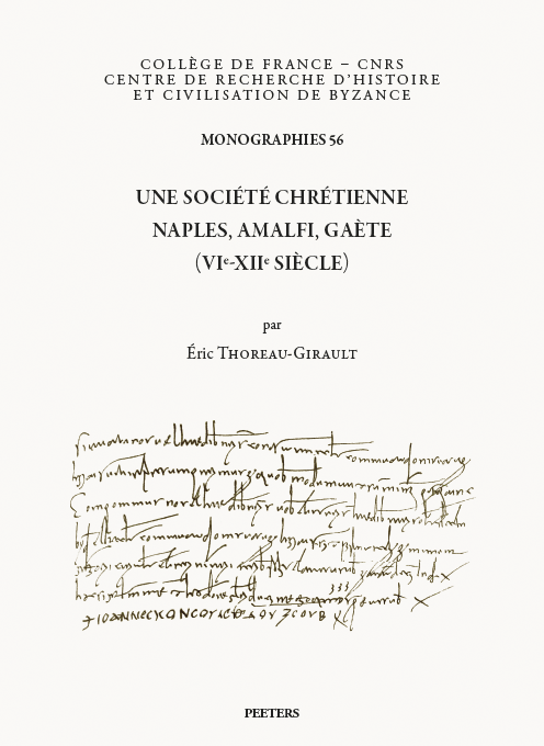 Éric Thoreau-Girault, Une société chrétienne. Naples, Amalfi, Gaète (VIe-XIIe siècle), Louvain, Peeters, 2022 ; 1 vol., VI–588 p. (Monographies du Centre de Recherche d’Histoire et Civilisation de Byzance – Collège de France, 56). ISBN : 978-9-04294-810-5. Prix : € 72,00.
