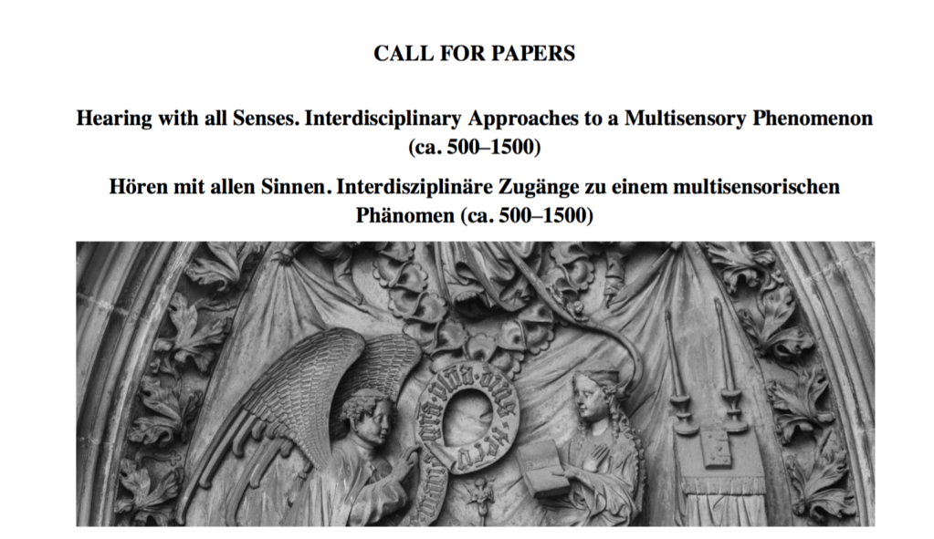 The aim of the conference is to trace the special significance of hearing within multisensory structures and related patterns of perception and contexts of meaning within their specific communication contexts. This not only addresses genuine questions of the historical sciences and humanities, but also calls for interdisciplinary approaches (e.g., in the field of psychoacoustics or the neurosciences): For instance, how does what is heard change depending on what is seen or perceived with other senses? It is equally necessary to consider transcultural as well as transreligious perspectives on the phenomenon of multisensory hearing. Furthermore, it is important to question the terminology of the sensory crossing of borders (such as synesthetic, multi- or intersensory, multi- or cross-modal) regarding contemporary categories of interpretation. The possibilities of present-day mediation of medieval themes and objects in the context of the sensory interplay in museums, for example to blind visitors or in general in ears-on-exhibitions, should also be discussed. The contributions can open exemplary approaches, tackle the phenomenon on a theoretical level or outline methodological insights.