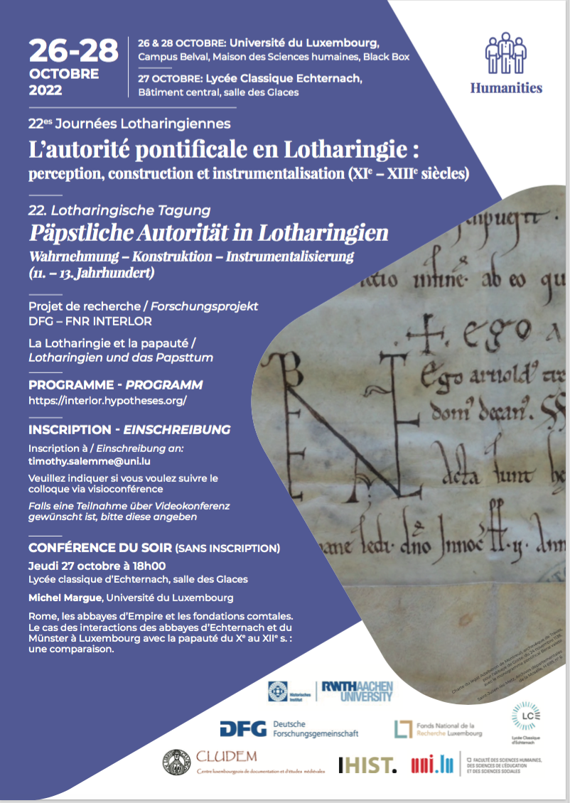 Colloque organisé dans le cadre du projet de recherche / Forschungsprojekt FNR – DFG « Lotharingien und das Papsttum » (INTERLOR)