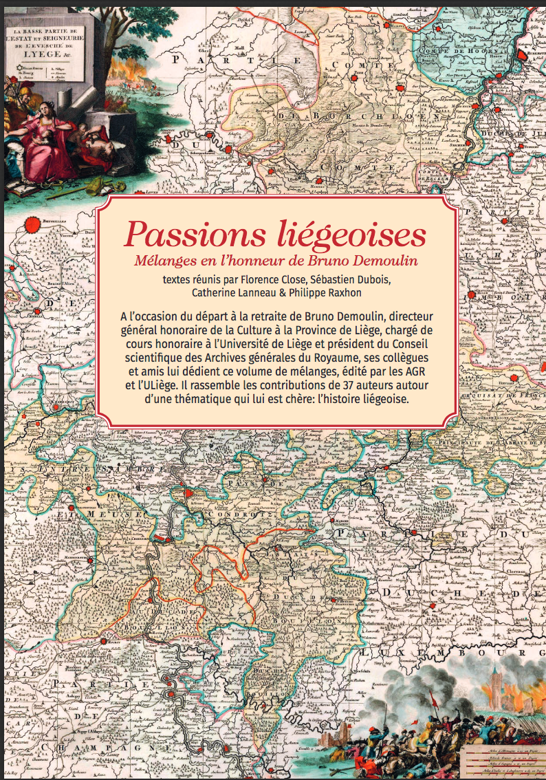 A l’occasion du départ à la retraite de Bruno Demoulin, directeur général honoraire de la Culture à la Province de Liège, chargé de cours honoraire à l’Université de Liège et président du Conseil scientifique des Archives générales du Royaume, 37 collègues et amis se sont associés pour lui dédier un volume de mélanges intitulé « Passions Liégeoises », édité par les AGR et l’ULiège. La parution du livre (environ 450 pages) est prévue en décembre 2022.