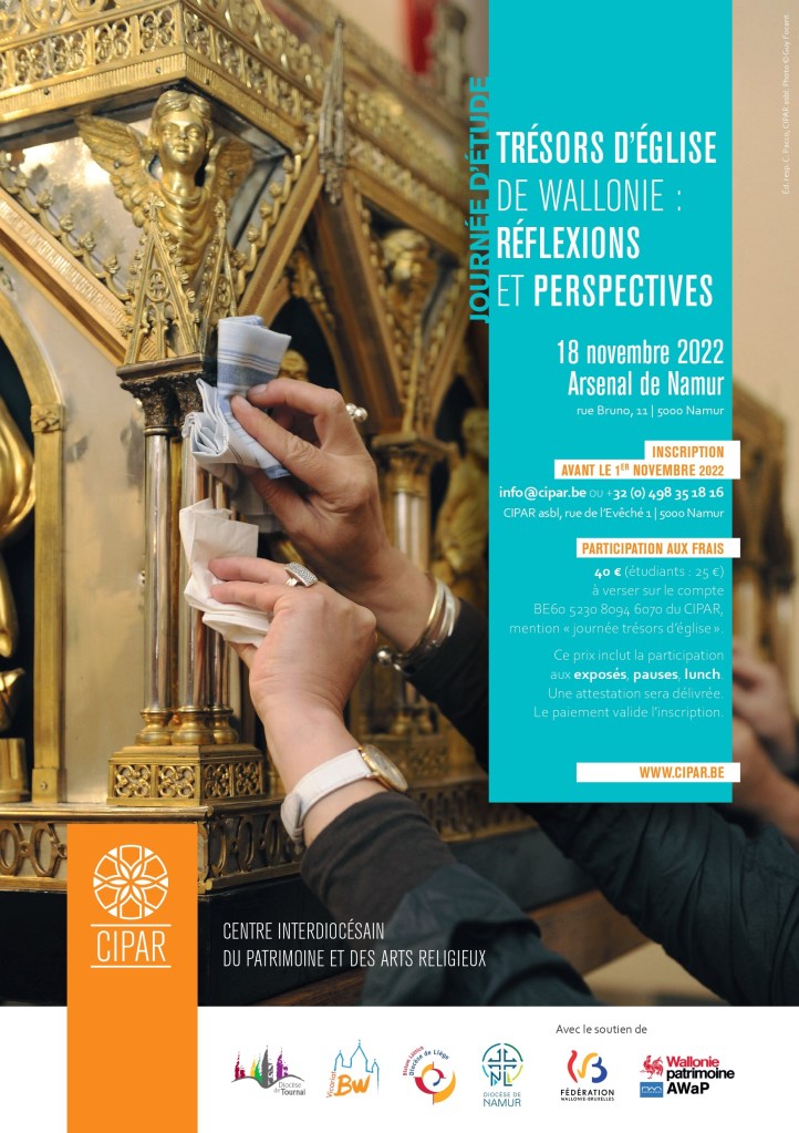 Le 18 novembre 2022, le CIPAR organise une journée d’étude consacrée aux trésors d’églises, ces ensembles d’objets précieux attachés à nos cathédrales et collégiales. A l’occasion du nouveau décret de la Fédération Wallonie-Bruxelles portant sur la protection du patrimoine culturel, la journée mettra en lumière le patrimoine exceptionnel des églises de Wallonie. Cette journée se déroulera à l’Arsenal de Namur.