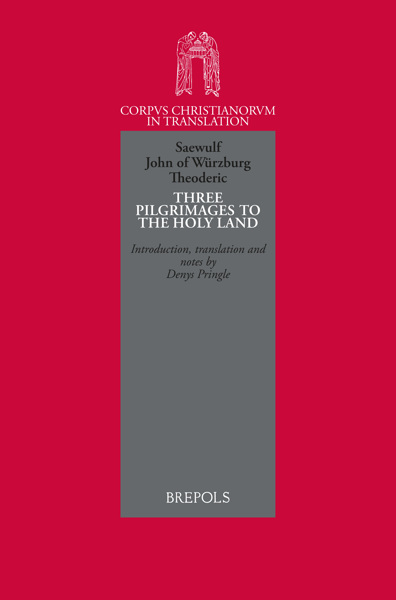 Saewulf, John of Würzburg, Theoderic, Three Pilgrimages to the Holy Land, trad. Reginald Denys Pringle, Turnhout, Brepols, 2022 ; 1 vol., 302 p. (Corpus Christianorum in Translation, 41). ISBN : 978-2-503-59372-2. Prix : € 60,00.