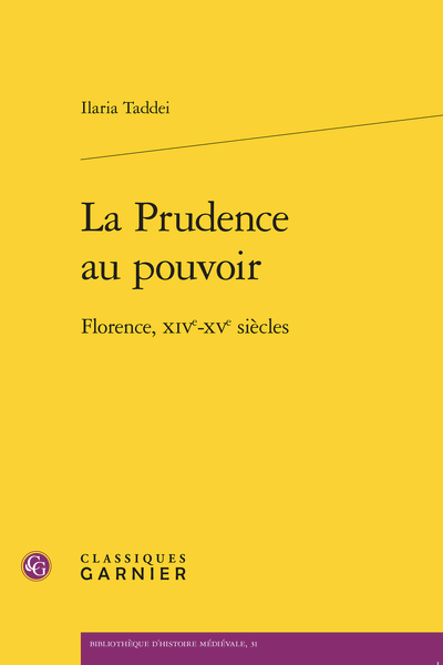 Ilaria Taddei, La Prudence au pouvoir Florence, XIVe-XVe siècle, Paris, Classiques Garnier, 2022 ; 1 vol., 508 p. (Bibliothèque d’histoire médiévale, 31). ISBN : 978-2-406-13804-4. Prix : € 49,00.