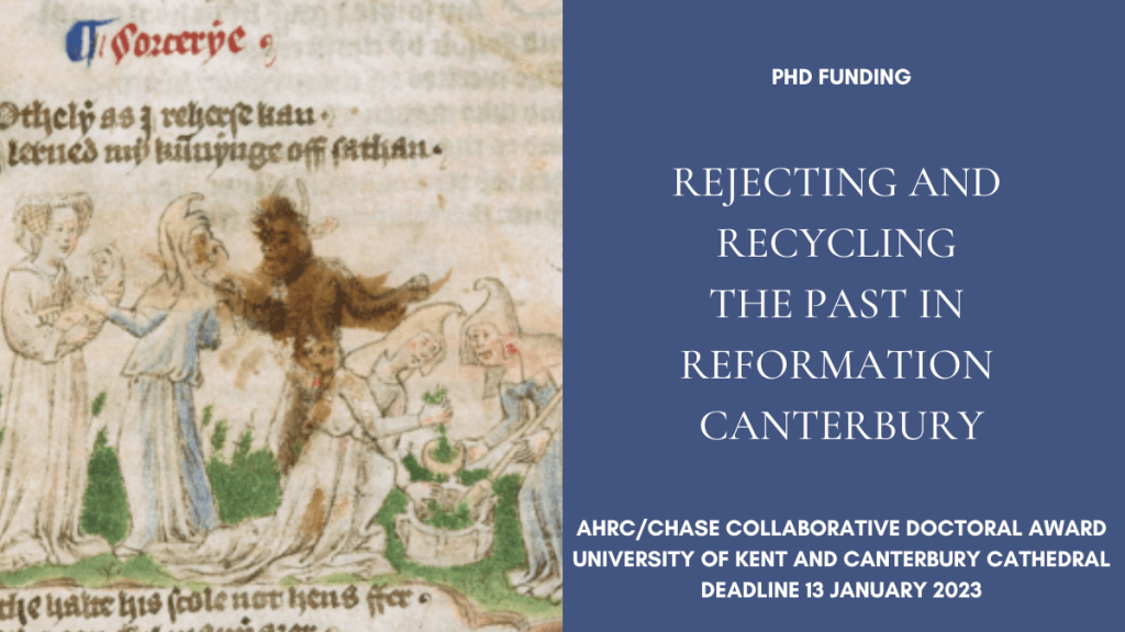This collaborative doctoral award will allow one student to intervene an emerging new humanities discipline, working at a World Heritage Site. Funded by CHASE, it is a collaboration between the Centre for Medieval and Early Modern Studies at the University of Kent and the Archives and Library at Canterbury Cathedral.