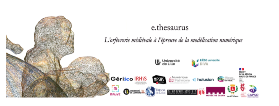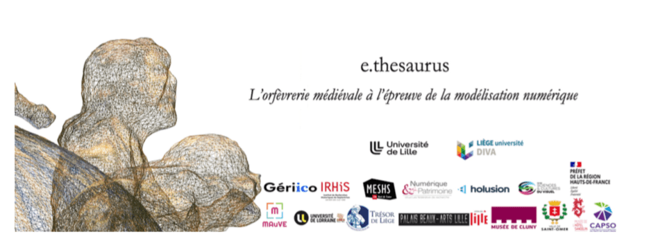 Dans le cadre du programme de recherche e.thesaurus, l’orfèvrerie à l’épreuve de la modélisation 3D (Programme CPER MAuVE Médiations visuelles, culture numérique et création)1, le colloque des 11 et 12 mai 2023, organisé en partenariat avec le Groupe d’Étude de Recherche interdisciplinaire en information et COmmunication (GERiiCO-ULille–ULR 4073), viendra clore cinq années de recherche et d’expérimentations autour d’enjeux techniques, numériques, d’histoire de l’art et de médiations muséales, à partir de la modélisation 3D de pièces d’orfèvrerie médiévale et leur exploitation à la fois sous forme d’hologramme interactif (musée hors les murs) et dans une application web d’e.corpus 3D, permettant l’annotation directe d’objets dont les caractéristiques principales sont une complexité de fabrication, un fort pouvoir de réflectance des matériaux, véritable verrou technologique2, et, du point de vue de l’histoire de l’art et de la médiation, une difficulté certaine pour les publics actuels à appréhender ces témoins exceptionnels des mentalités religieuses, de la dévotion et de thèmes iconographiques complexes propres au monde médiéval.