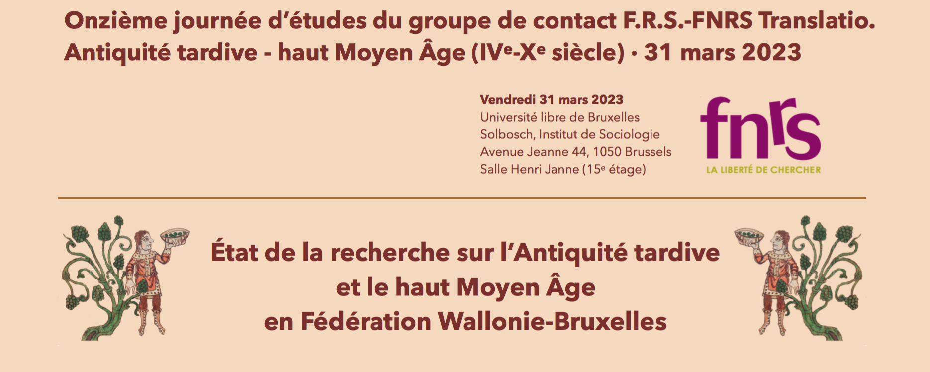 Onzième journée d’études du groupe de contact F.R.S.-FNRS Translatio. Antiquité tardive – haut Moyen Âge (IVe-Xe siècle) · 31 mars 2023