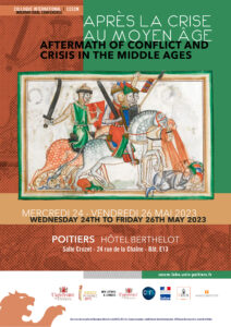 Les guerres, les pestes et les catastrophes naturelles occupent une place essentielle dans les récits médiévaux. Elles posent le problème des réponses que la société leur apporte. Ce colloque, initiative conjointe de chercheurs de l’Université de Poitiers et de l’Université du Tennessee à Knoxville, explore les répercussions des guerres et d’autres crises par l’analyse des bouleversements culturels, sociaux et institutionnels qu’elles ont provoqués. Plusieurs questions seront au cœur de notre rencontre. Comment les hommes et les femmes ont-ils réagi aux catastrophes humaines et naturelles ? De quelle façon se sont-ils adaptés aux nouvelles situations engendrées par ces crises ? Les autorités ont-elles fait preuve de résilience après des conflits militaires ? Les auteurs et artistes ont-ils abordé les traumatismes de l’après-guerre ou de l’après-crise ? Quels changements religieux ou sociaux ont eu lieu à la suite des épidémies ? Les calamités naturelles ou les troubles civils ont-ils produit des réponses culturelles favorisant des développements positifs au lendemain des tragédies ?