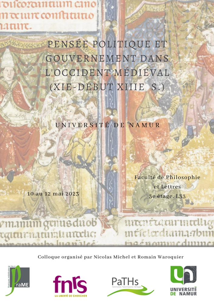 Le « long XIIe siècle » est une période d’importantes mutations sur le plan culturel et intellectuel, mais aussi politique et institutionnel. Les penseurs médiévaux, majoritairement des ecclésiastiques, perçoivent également ces transformations fondamentales et les réflexions autour des questions du pouvoir et du gouvernement laïc (vanité de la cour, tyrannicide, thème du roi lettré, métaphore organiciste, etc.) fleurissent au sein de textes aux caractères extrêmement variés. L’objectif de ce colloque est de mener une analyse croisée de l’action et de la pensée politique entre le XIe siècle et le début du XIIIe siècle, et surtout de parvenir à faire résonner ces deux aspects du pouvoir sur une fréquence commune. Une réflexion d’ensemble, évitant l’écueil de l’opposition entre théorie et pratique politique, est nécessaire pour apporter une perspective novatrice à l’appréhension de la pensée et de l’action politique au cours de ce long XIIe siècle. Cette rencontre convie les participants à réfléchir sur une mise en relation entre des modèles ou des actes gouvernementaux concrets et des considérations plus théoriques et sur l’influence que ces deux éléments structurants pourraient avoir l’un sur l’autre. Une seconde question primordiale sous-tend ce raisonnement : celle de la finalité et de la réception des œuvres qui les contiennent. En effet, il convient de déterminer par quel(s) moyen(s) et quel(s) intermédiaire(s) les gouvernants pouvaient y avoir accès et quel impact ces textes pouvaient avoir sur leurs pratiques gouvernementales et sur les mutations évoquées ci-dessus.