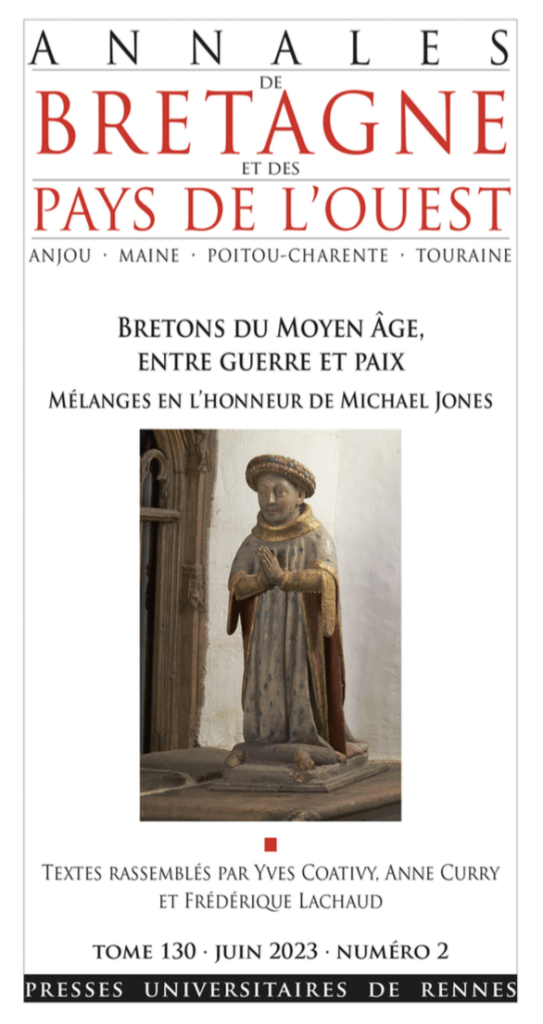 Bretons du Moyen Âge, entre guerre et paix. Mélanges en l’honneur de Michael Jones, éd. Yves Coativy, Anne Curry et Frédérique Lachaud, Annales de Bretagne et des Pays de l’Ouest, t. 130, 2023.