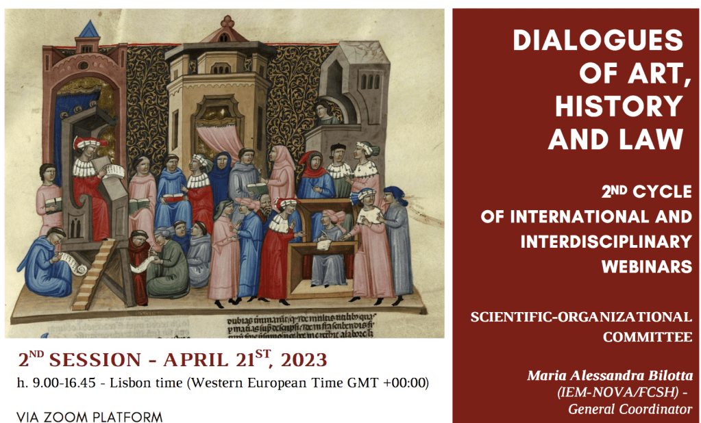 Le 2e cycle de webinaires « DIalogues of Art, History and Law » est organisé par l’Institut d’études médiévales (IEM-NOVA/FCSH), en collaboration avec l’équipe de recherche IUS ILLUMINATUM et en partenariat avec l’Institut portugais d’héraldique (IPH), la Bibliothèque capitulaire de Vérone et la Bibliothèque capitulaire de Verceil.