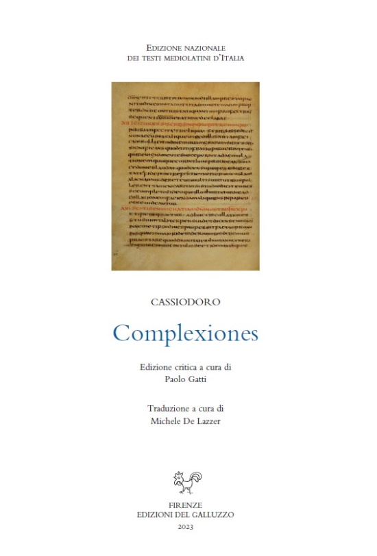 Cassiodore, Complexiones, éd. Paolo Gatti, trad. Michele De Lazzer, Florenze, SISMEL–Edizioni del Galluzzo, 2023 ; 1 vol., IV–294 p. (Edizione Nazionale dei Testi Mediolatini d’Italia, 64 ; Serie II, 31). ISBN : 978-88-9290-214-5. Prix : € 66,00.