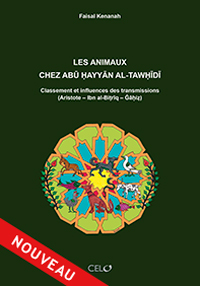 Faisal Kenanah, Les animaux chez Abū Ḥayyān al-Tawḥīdī. Classement et influences des transmissions (Aristote – Ibn al-Biṭrīq – Ğāḥiẓ), Bruxelles, Éditions Safran, 2023 ; 1 vol., 220 p. (Cultures et Langues Orientales, 5). ISBN : 978-2-87457-141-1. Prix : € 55,00