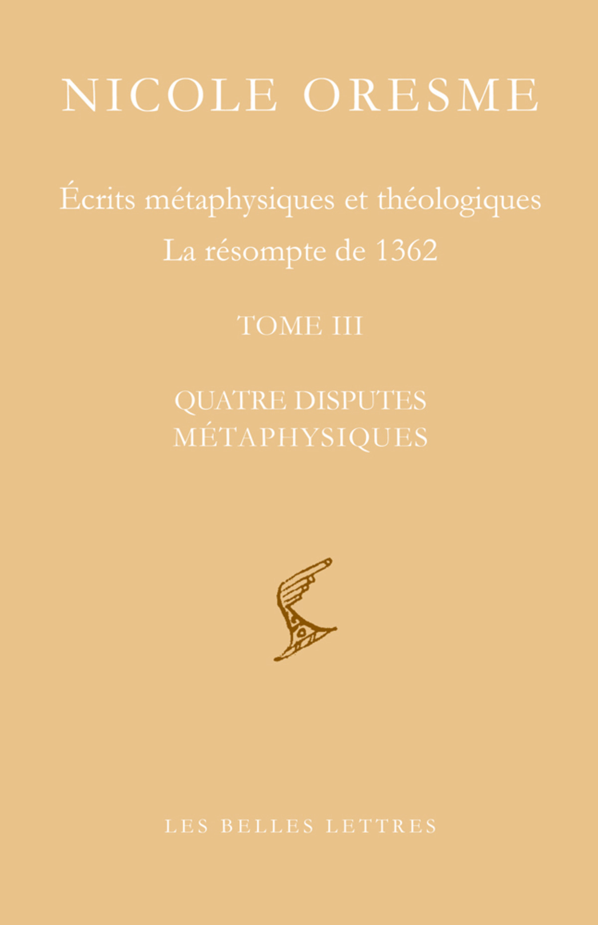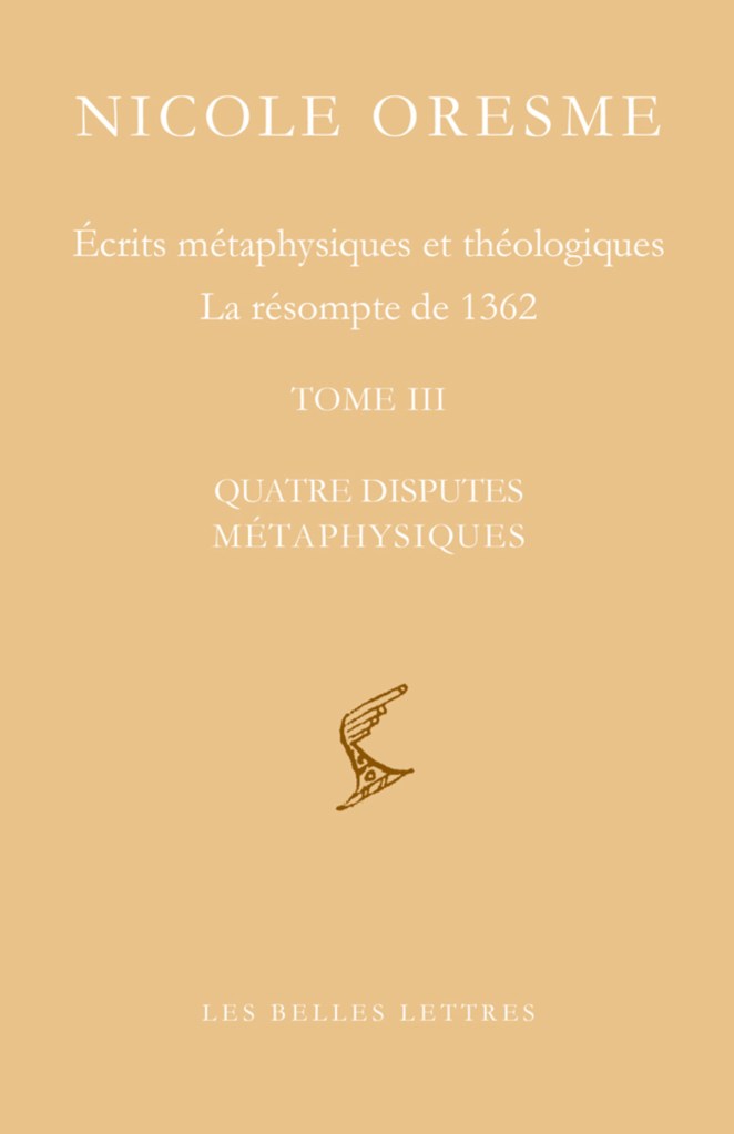 Nicole Orseme, Écrits métaphysiques et théologiques. La résompte de 1362 (Tome III, Quatre disputes métaphysiques), éd. et trad. Alain Boureau, 1 vol., 716 (Bibliothèque scolastique, 19). ISBN : 978-2-25145-410-8. Prix :€ 65,00.