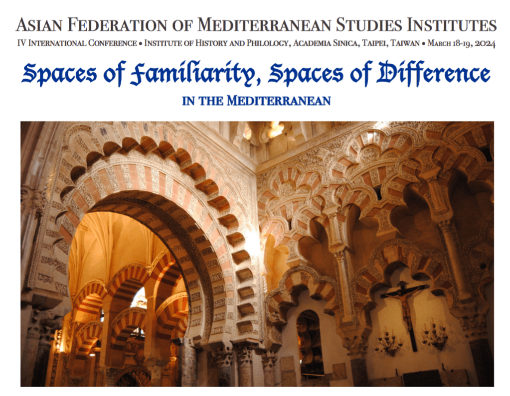 The Asian Federation of Mediterranean Studies Institutes is seeking papers to be presented at the Asian Federation of Mediterranean Studies Institutes IV Biennial International Conference to be held at Academia Sinica, Taiwan’s national academy of sciences, on 18 & 19 March, 2024 on the theme of “Spaces of Familiarity, Spaces of Difference in the Mediterranean.”
