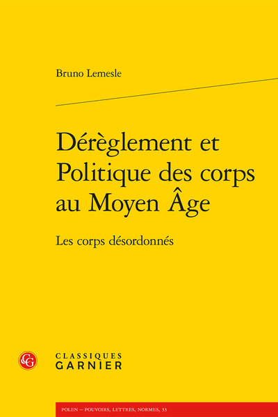 Bruno Lemesle, Dérèglement et Politique des corps au Moyen Âge. Les corps désordonnés, Paris, Classiques Garnier, 2023 ; 1 vol., 272 p. (POLEN – Pouvoirs, lettres, normes, 33). ISBN : 978-2-406-15021-3. Prix : € 32,00.