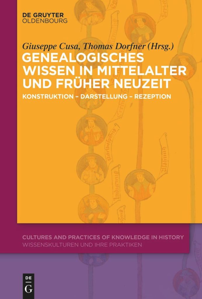 Genealogisches Wissen in Mittelalter und Früher Neuzeit. Konstruktion – Darstellung – Rezeption, éd. Giuseppe Cusa, Thomas Dorfner, Oldenbourg, De Gruyter, 2023 ; 1 vol., IX–389 p. (Cultures and Practices of Knowledge in History). ISBN : 978-3-11079-304-8. Prix : € 79,95. Version e-book en open access.