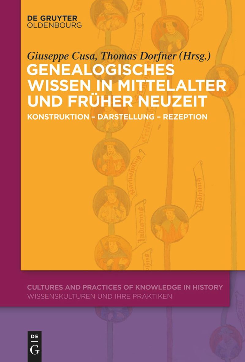 Genealogisches Wissen in Mittelalter und Früher Neuzeit. Konstruktion – Darstellung – Rezeption, éd. Giuseppe Cusa, Thomas Dorfner, Oldenbourg, De Gruyter, 2023 ; 1 vol., IX–389 p. (Cultures and Practices of Knowledge in History). ISBN : 978-3-11079-304-8. Prix : € 79,95. Version e-book en open access.
