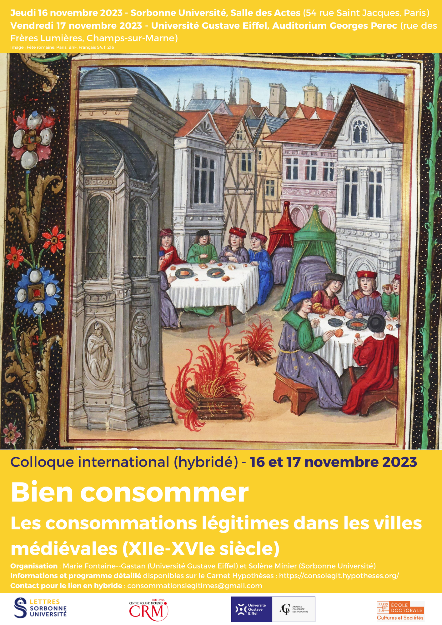 - 15h15-15h45 : Cécile Troadec (Centre Roland Mousnier) – Cultures carnivores : la consommation de viande à Rome et Bologne à la fin du Moyen Âge