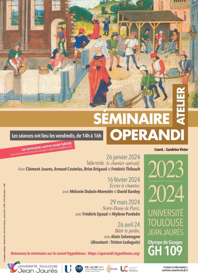 Le programme du séminaire d’histoire et d’archéologie de la construction et du bâti, Atelier Operandi, est désormais disponible.