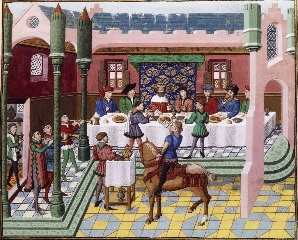 Lieux de représentation sociopolitique et symbolique par excellence, les cours princières n’en demeuraient pas moins un espace de vie, dont l’hôtel était le cœur, le noyau organisationnel autour duquel elles gravitaient. Regroupant les services chargés de veiller aux besoins domestiques du prince, de sa famille, de son entourage, mais également des hôtes et ambassadeurs de passage, l’hôtel avait ainsi la charge de vêtir la famille princière, d’en organiser les déplacements, tant en chariot qu’à cheval, et de préparer les différents lieux de logement, qu’il s’agisse de palais, de résidences princières ou urbaines, voire même parfois d’auberges pour les nombreux serviteurs qui le suivaient. Les services de bouche, cuisine et bouteillerie, réunissaient, pour leur part, les denrées nécessaires à l’approvisionnement de la cour : vin, épices, viande et poissons variés, avant de les apprêter au quotidien, ou lors d’événements et de banquets plus solennels, au gré de l’itinérance de la cour.