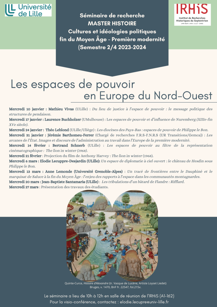 Le séminaire a lieu de 10h à 12h en salle de réunion de l’IRHiS (A1-162). Pour la visioconférence, contactez : elodie.lecuppre@univ-lille.fr