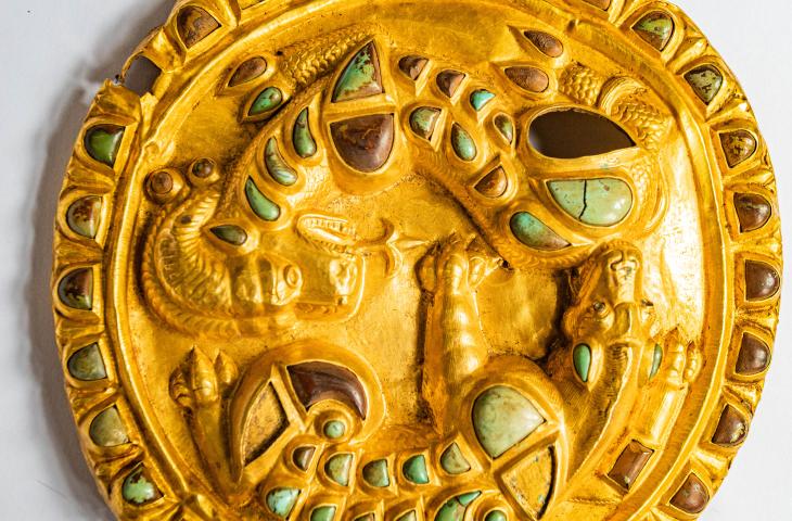 On produit du vin en Géorgie depuis au moins 8000 ans. Il accompagne un art de la table ritualisé, à la cuisine raffinée, qui fait partie à part entière du patrimoine. Bien culturel le plus ancien de Géorgie, il servira de point de départ à l’exposition. Le travail du métal – or et bronze – occupera également une place cruciale dans le parcours. Dès l’âge du bronze, on développe sur les terres géorgiennes des pièces d’orfèvrerie d’une délicatesse et d’une somptuosité inouïes. C’est d’ailleurs en Géorgie que le mythe de la Toison d’Or trouve ses racines : la région était connue des Grecs pour sa grande richesse en or.