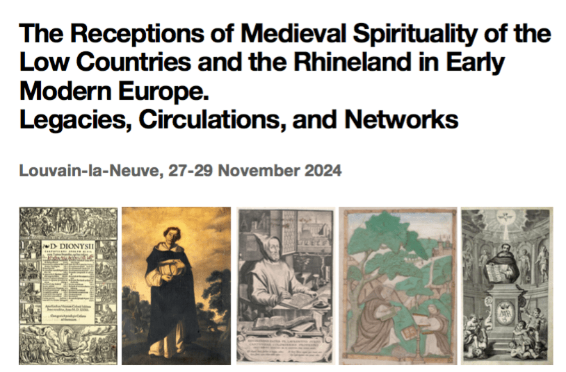 The objective of this interdisciplinary conference is to examine the receptions in early modern Europe of the medieval spiritual currents of the Low Countries and the Rhineland, encompassing all their facets (theology, mysticism, pastoral, devotion). In the context of the Reformation and under the leadership of Peter Blomevenna, Johannes Lanspergius and Laurentius Surius, the Charterhouse of Cologne played a significant role in translating and publishing mystical and ascetic texts by Jan van Ruusbroec, Henry Suso, Johannes Tauler, Dionysius the Carthusian, and the Evangelical Pearl (Chaix 1981, Hoenen 2008, Fournier 2018, Wehrli-Johns 2018). On the other hand, the implicit influence of authors from the Devotio Moderna, such as Geert Grote, Florens Radewijns, Gerard Zerbolt van Zutphen, Thomas a Kempis, Wessel Gansfort, and Jan Mombaer, on early modern spiritualities, including those of Erasmus and Ignatius of Loyola, is widely acknowledged (Watrigant 1897, Bataillon 1937, O’Reilly 2021). Several currents in the early modern period testify to these legacies and demonstrate their reciprocal interactions. The circle of Richard Beaucousin, comprising of François de Sales, Barbe Acarie, and Pierre de Bérulle in seventeenth-century France (Bremond 1916-1936, Orcibal 1959, Cognet 1968), along with the collections of Maximilian Van der Sandt and Pierre Poiret, which were distributed across Europe (Dekoninck-Guiderdoni 2019), are just a few instances.