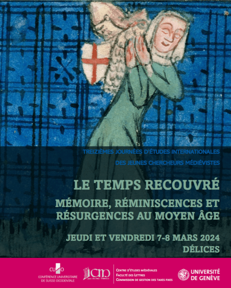 Les journées d’études organisées par les Jeunes Chercheurs Médiévistes (JCM) se tiendront cette année les 7 et 8 mars 2024 à l’Université de Genève. Elles seront consacrées aux notions de mémoire, de réminiscence et de résurgence.