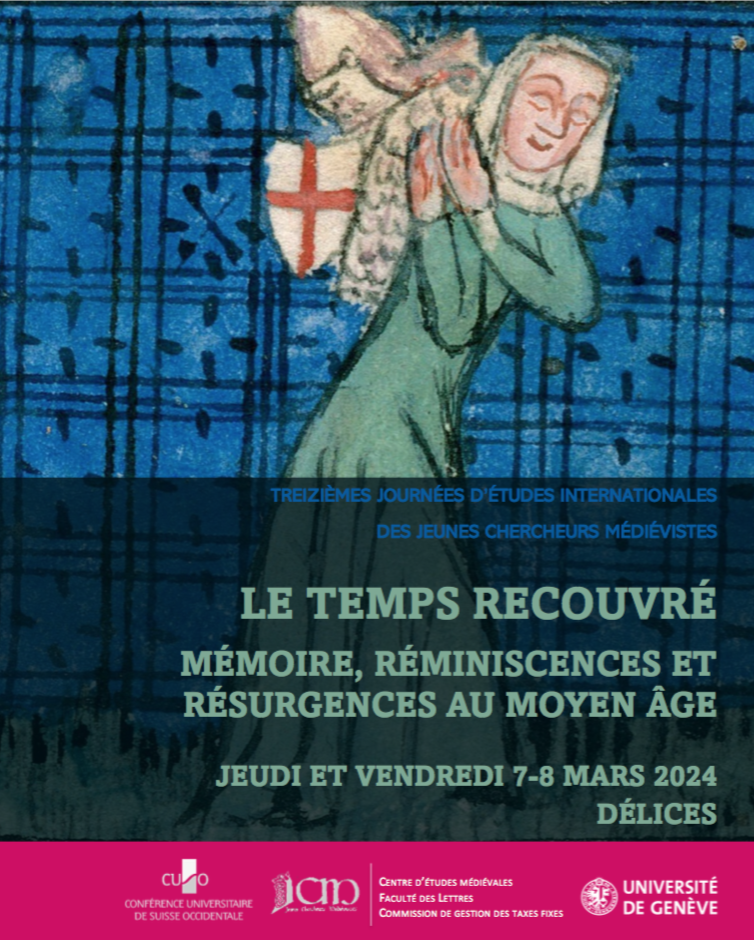 Les journées d’études organisées par les Jeunes Chercheurs Médiévistes (JCM) se tiendront cette année les 7 et 8 mars 2024 à l’Université de Genève. Elles seront consacrées aux notions de mémoire, de réminiscence et de résurgence.