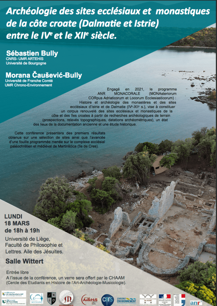 Engagé en 2021, le programme ANR MONACORALE (MONAsteriorum CORpus Adriaticorum et Locorum Ecclesiasticorum) : Histoire et archéologie des monastères et des sites ecclésiaux d’Istrie et de Dalmatie (IVe-XIIe s.), vise à constituer un corpus renouvelé des sites ecclésiaux et monastiques de la côte et des îles croates à partir de recherches archéologiques de terrain (prospections, relevés topographiques, datations archéométriques), un état des lieux de la documentation ancienne et une étude historique.