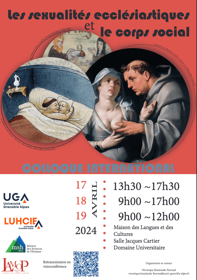 La récente mise à jour d’affaires d’abus sexuels dans l’Église catholique, et de manière générale dans les mouvances religieuses, pose avec acuité la question du rapport que les Églises entretiennent avec la sexualité et les pratiques sexuelles tout au long de leur histoire. Le colloque « Les sexualités ecclésiastiques et le corps social, Moyen Âge – époque moderne » s’inscrit dans le cadre du projet IRGA SexEO, centré sur les pratiques sexuelles des membres des clergés et qui vise à ancrer ces questionnements dans une réflexion historique articulant normes et pratiques, principes et réalités, gouvernement d’une communauté et contrôle des individus qui la composent. Il en constitue l’action principale, avant publication d’un livre collectif issu de la rencontre.
