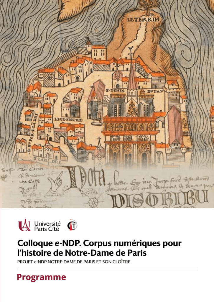 Le projet ANR e-NDP (2021-2024) renouvelle la connaissance de la cathédrale Notre-Dame de Paris par l’édition collaborative numérique de registres médiévaux du chapitre (1326-1504). Cette édition collaborative se fonde sur une intelligence artificielle de reconnaissance de l’écriture manuscrite (HTR). Le projet propose aussi de reconstituer numériquement le fonds de la bibliothèque du chapitre ainsi