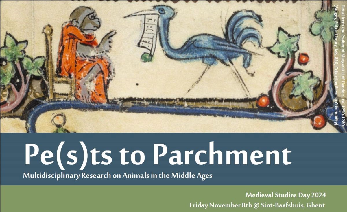 Save the date and call for papers for PhD students for the Medieval Studies Day 2024 ‘Pe(s)ts to Parchment – Multidisciplinary Research on Animals in the Middle Ages’ (Ghent, 8 November 2024).