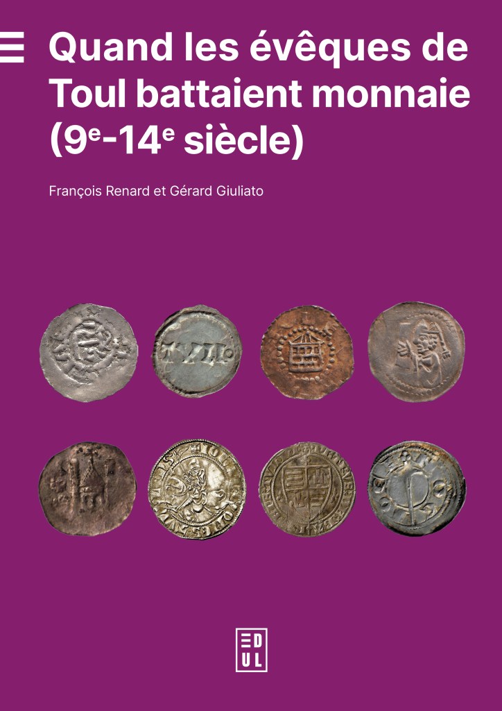 Quand les évêques de Toul battaient monnaie (9e-14e siècle), éd. François Renard, Gérard Giuliato, Nancy, Éditions de l’Université de Lorraine, 2024 ; 1 vol., 364 p. (Archéologie, espaces, patrimoines). ISBN : 978-2-38451-078-8. Prix : € 32,00.