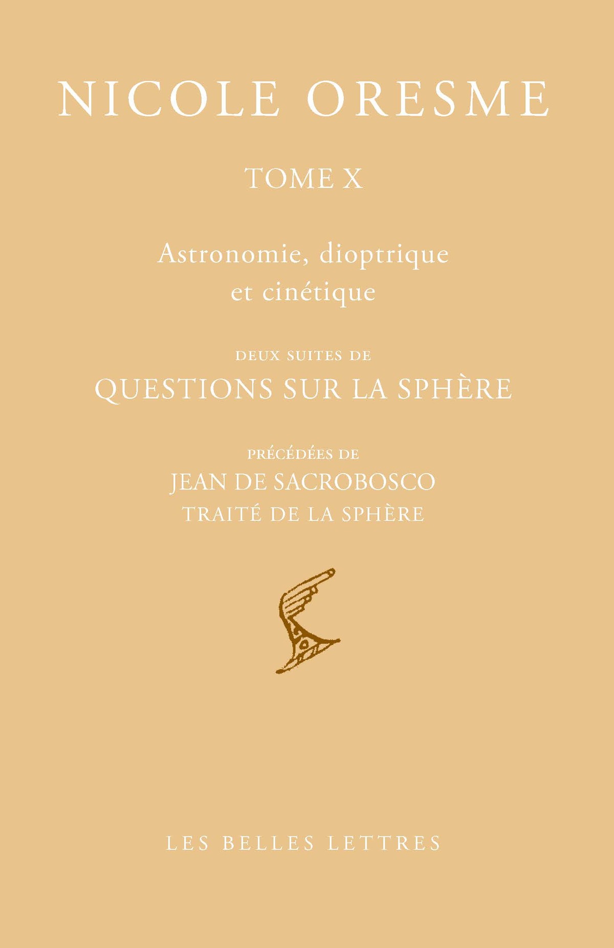 Nicole Oresme, Tome X : Astronomie, dioptrique et cinétique. Deux suites de questions sur la sphère, précédées de Jean de Sacrobosco, Traité de la Sphère, éd. et trad. Alain Boureau, Paris, Les Belles Lettres, 2024 ; 1 vol., 644 p. (Bibliothèque scolastique, 20). ISBN : 978-2-25145-555-6. Prix : € 65,00.