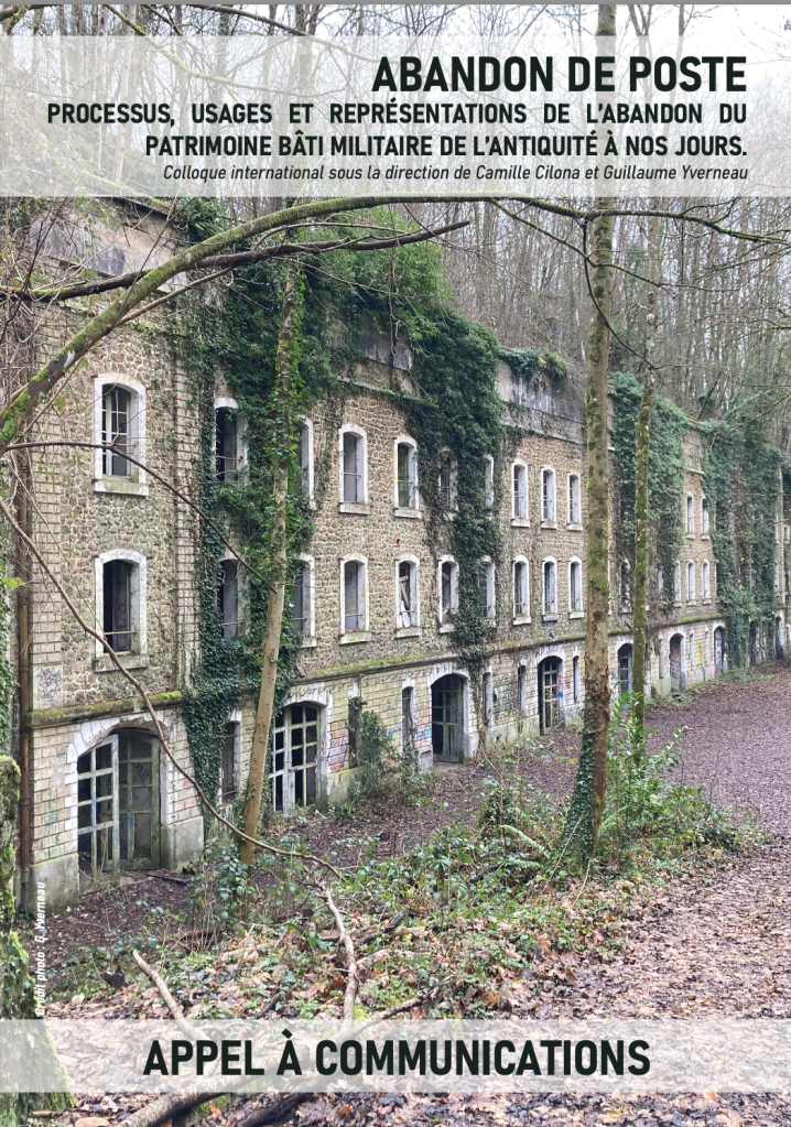 Nous attirons votre attention sur la modification des dates du colloque international « Abandon de poste. Processus, usages et représentations de l’abandon du patrimoine bâti militaire, de l’Antiquité à nos jours » qui se tiendra au château de Vincennes, du 14 au 16 avril 2025. En conséquence, le retour des propositions de communication, dont vous trouverez l’appel en PJ à ce mail, a été avancé au 15 novembre prochain.