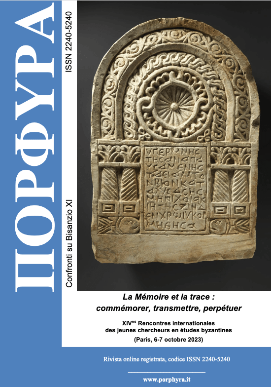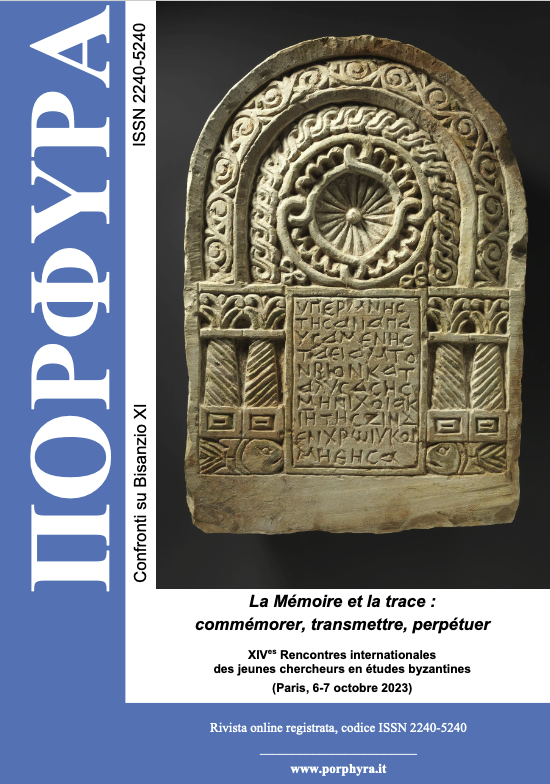 La mémoire et la trace : commémorer, transmettre, perpétuer. XIVe Rencontres internationales des jeunes chercheurs en études byzantines, éd. Apolline Gay, François Pacha Miran et L.M. Ciolfi, Porphyra, t. 11, 2024 ; 1 vol., 125 p. ISSN : 2240-5240. En ligne.