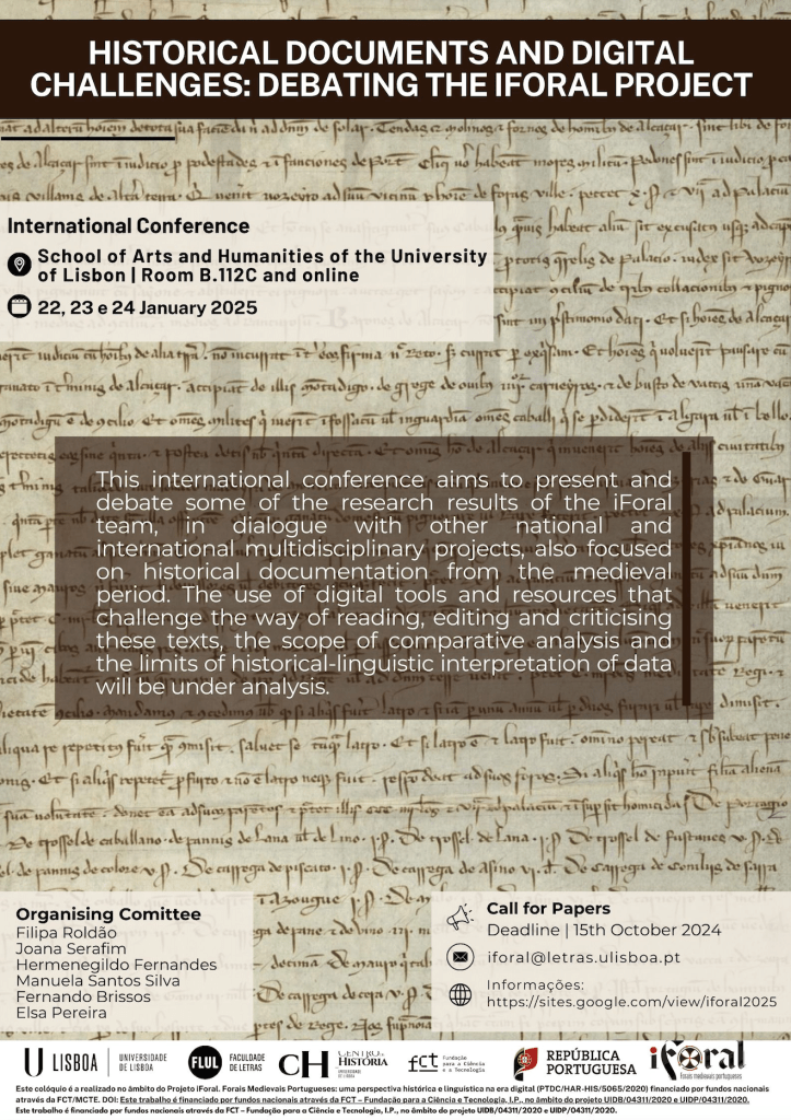 This international conference aims to present and debate some of the research results of the iForal team, in dialogue with other national and international multidisciplinary projects, also focused on historical documentation from the medieval period. The use of digital tools and resources that challenge the way of reading, editing and criticising these texts, the scope of comparative analysis and the limits of historical-linguistic interpretation of data will be under analysis.