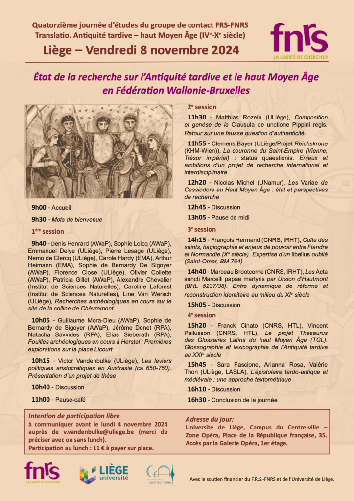 Quatorzième journée d’étude du groupe de contact F.R.S.-FNRS Translatio. Antiquité tardive – haut Moyen Âge (IVe-Xe siècle)