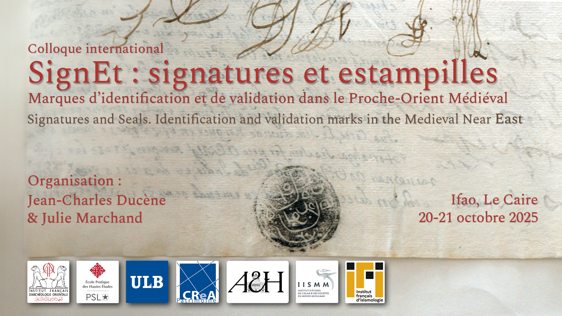 The subject of signatures and stamps in the medieval Near East requires a multidisciplinary review in the light of the most recent data (documentary, literary and archaeological sources). With this in mind, an international conference on the subject will be held in Cairo on 20-21 October 2025 at the Institut Français d’Archéologie Orientale (Ifao), to assess the use of the various signs of validation, ownership, identification and authentication.