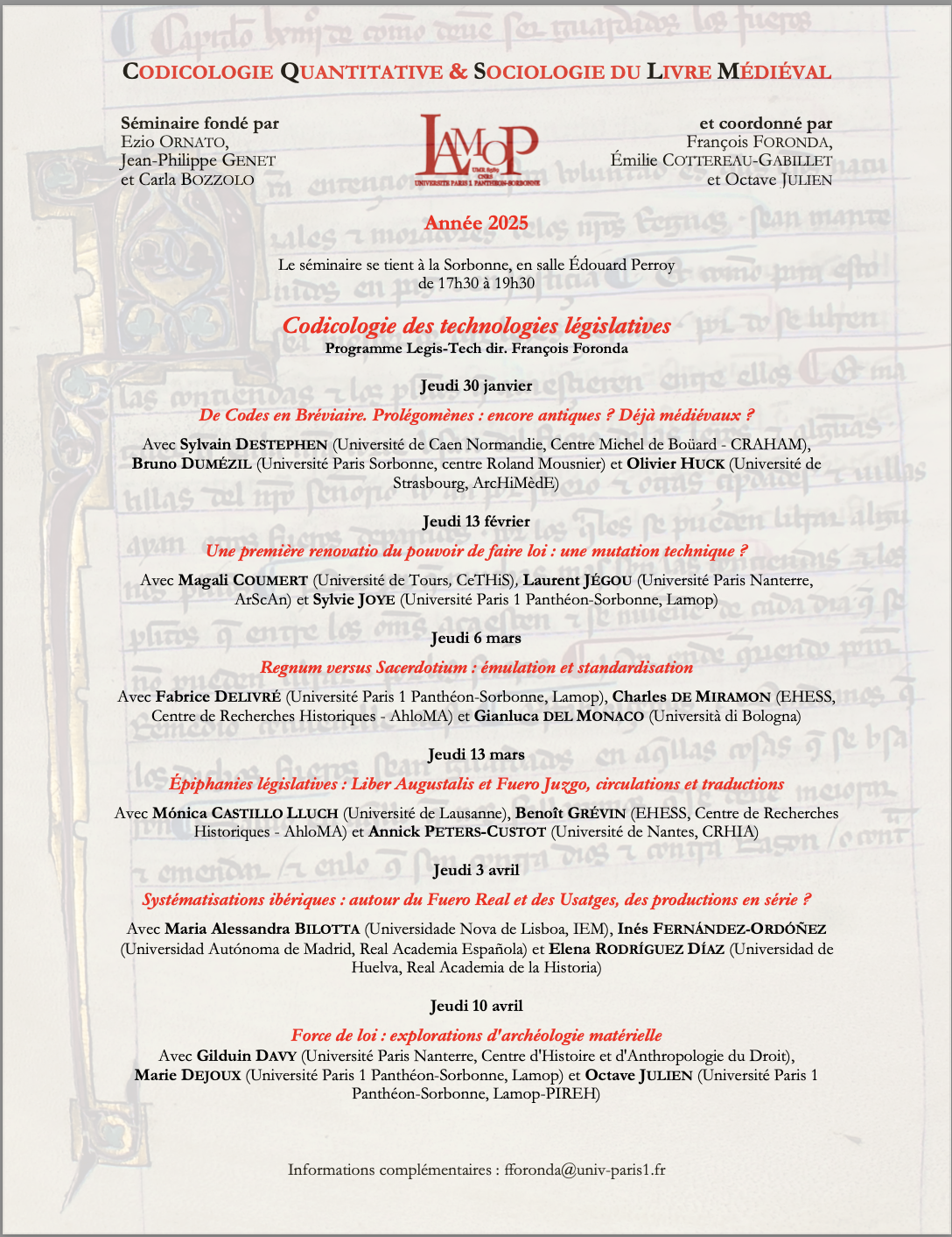 Séminaire fondé par Ezio ORNATO, Jean-Philippe GENET et Carla BOZZOLO et coordonné par François FORONDA, Émilie COTTEREAU-GABILLET et Octave JULIEN