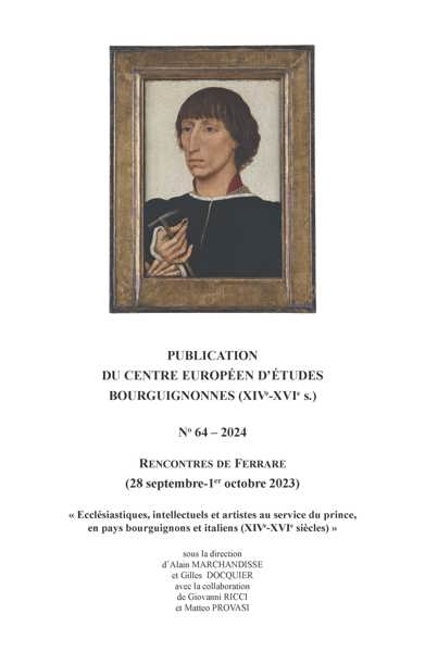 Ecclésiastiques, intellectuels et artistes au service du prince, en pays bourguignons et italiens (XIVe-XVIe siècles). Rencontres de Ferrare (28 septembre-1er octobre 2023), Publications du Centre Européen d’Études Bourguignonnes, t. 64, 2024 ; 1 vol., XIII–289 p. ISBN : 978-2-8399-4370-3. Prix € 82,00.