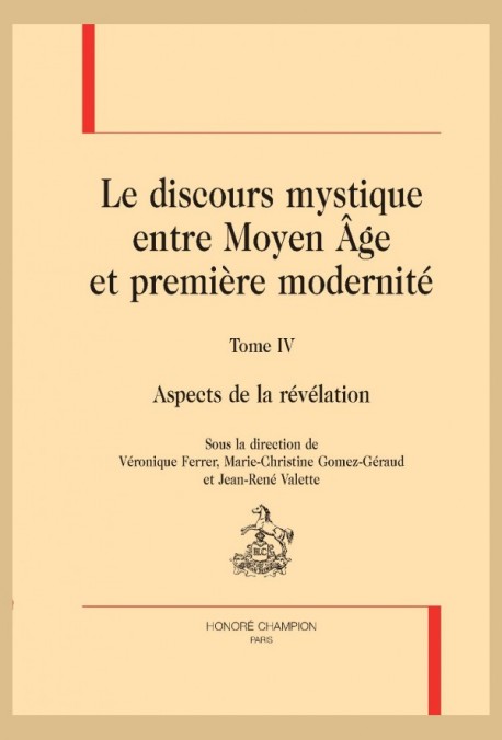 Le discours mystique entre Moyen âge et première modernité, t. 4, Aspects de la révélation, éd. Véronique Ferrer, Marie-Christine Gomez-Géraud, Jean-René Valette, Paris, Honoré Champion, 2024 ; 1 vol., 748 p. (Mystica). ISBN : 978-2-74536-217-9. Prix : € 95,00.