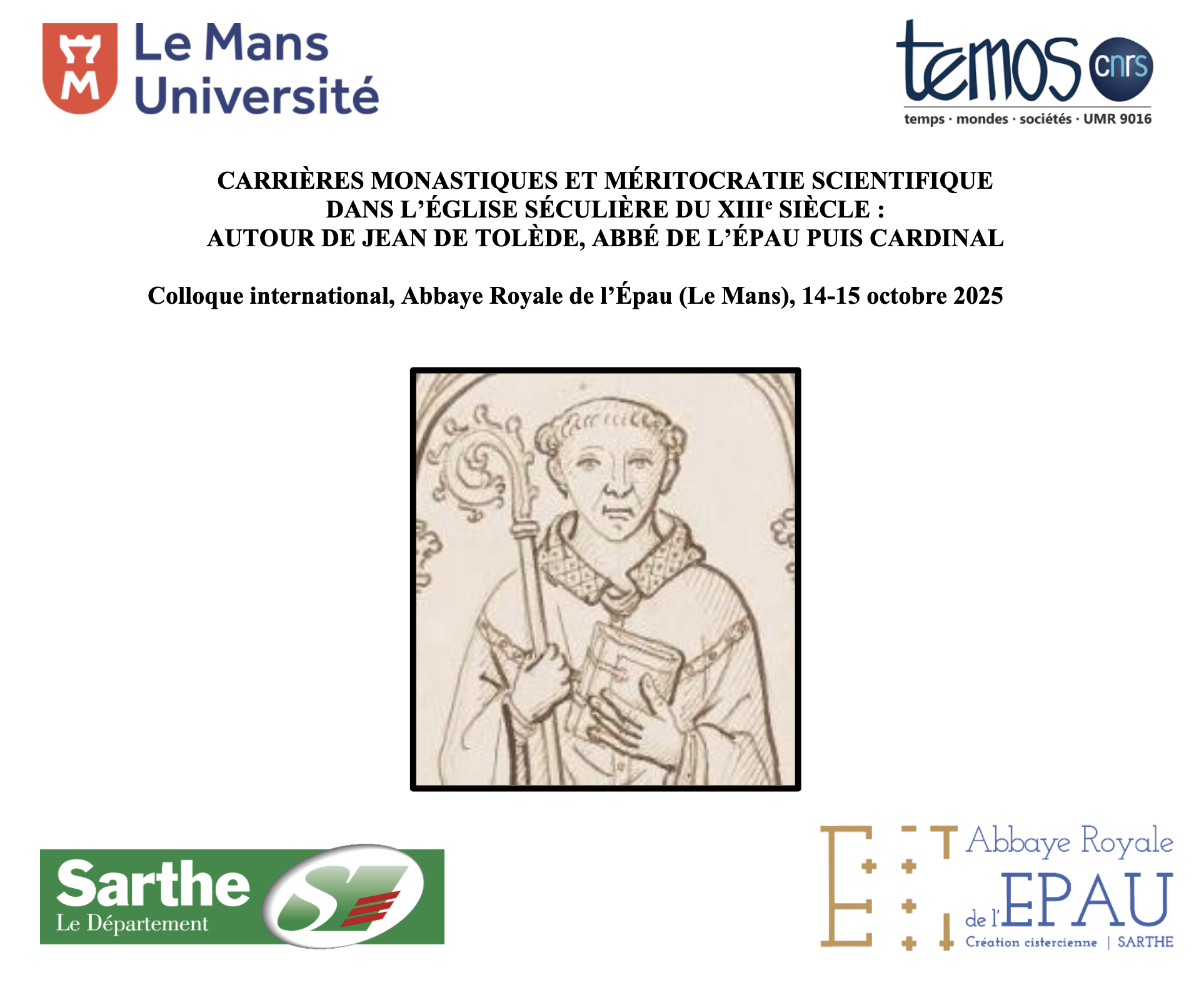 Jean de Tolède, un des membres les plus influents du collège des cardinaux entre 1244, date de son accession au cardinalat et 1275, date de sa mort, reste un personnage encore mal connu malgré sa notoriété et son influence au XIIIe siècle. Le lien récemment établi avec Jean, premier abbé de l’Épau, auquel on peut l’identifier, révèle à la fois la richesse du parcours du personnage et l’intérêt qu’il peut y avoir à s’intéresser de près à cette figure et à son parcours, ainsi qu’au milieu intellectuel et politique au sein duquel elle évolue.