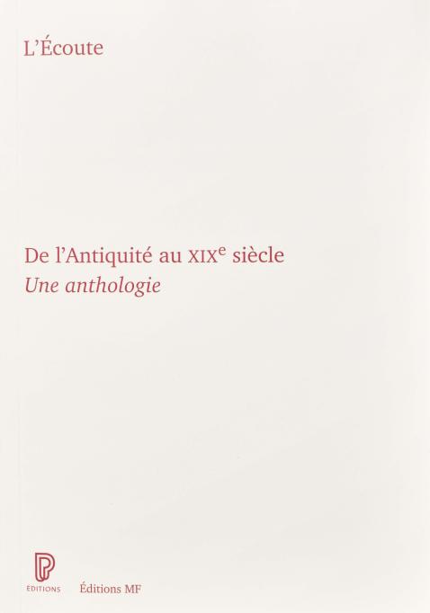 L’Écoute : de l’Antiquité au XIXe siècle. une anthologie, éd. Martin Kaltenecker, Paris, Philharmonie de Paris ; 1 vol., 1380 p. ISBN : 979-10-94642-34-4. Prix : € 40,00.