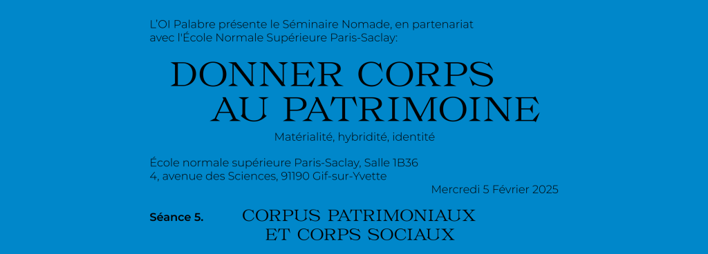 Cette cinquième édition du séminaire explorera les liens entre patrimoine et groupes sociaux, en analysant leurs logiques communes et leurs interdépendances. Nous interrogerons comment un corps social – défini comme un ensemble d’individus partageant des caractéristiques ou un concept commun – peut dialoguer avec un corpus patrimonial ou littéraire, constitué de documents ou d’objets réunis selon des critères de cohérence. En explorant la tension entre le tout et les parties ainsi que les interactions réciproques entre corps social et corpus patrimonial, ce séminaire adoptera une approche interdisciplinaire, combinant perspectives inductives et déductives. Nous chercherons à approfondir la compréhension des processus de catégorisation, de conceptualisation et de représentation des faits sociaux et patrimoniaux.