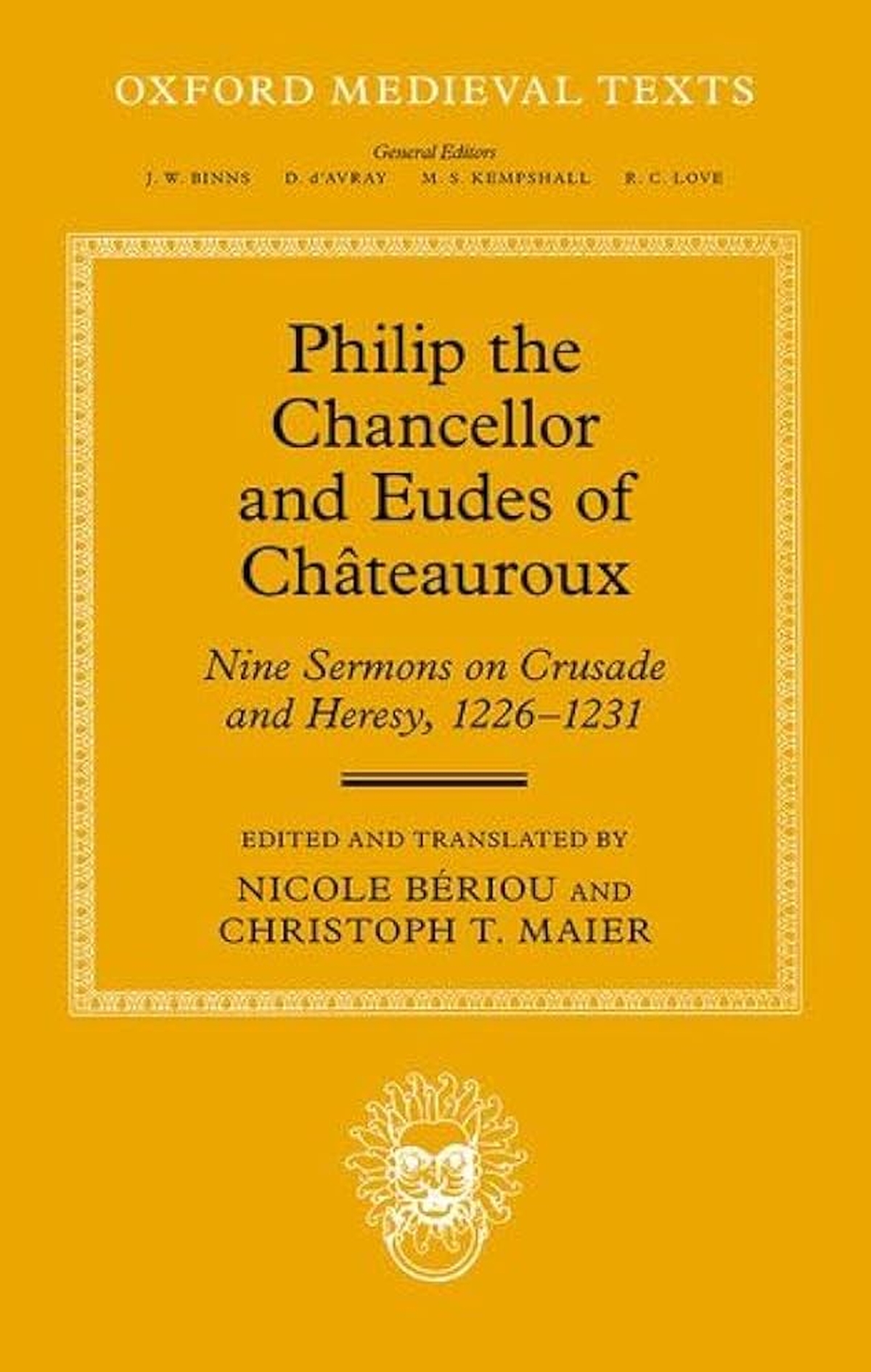 Philip the Chancellor and Eudes of Châteauroux. Nine Sermons on Crusade and Heresy, 1226—1231, éd. Nicole Beriou, Christoph Maier, Xoford, Oxford University Press, 2025 ; 1 vol., 288 p. (Oxford Medieval Texts). ISBN : 978-0-19892-139-4. Prix : GBP 130,00.